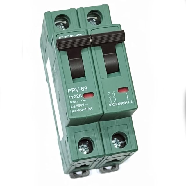 Автоматический выключатель постоянного тока FEEO FPV-63 2P 550V/32A – профессиональное решение для защиты солнечных электростанций и промышленных DC-систем