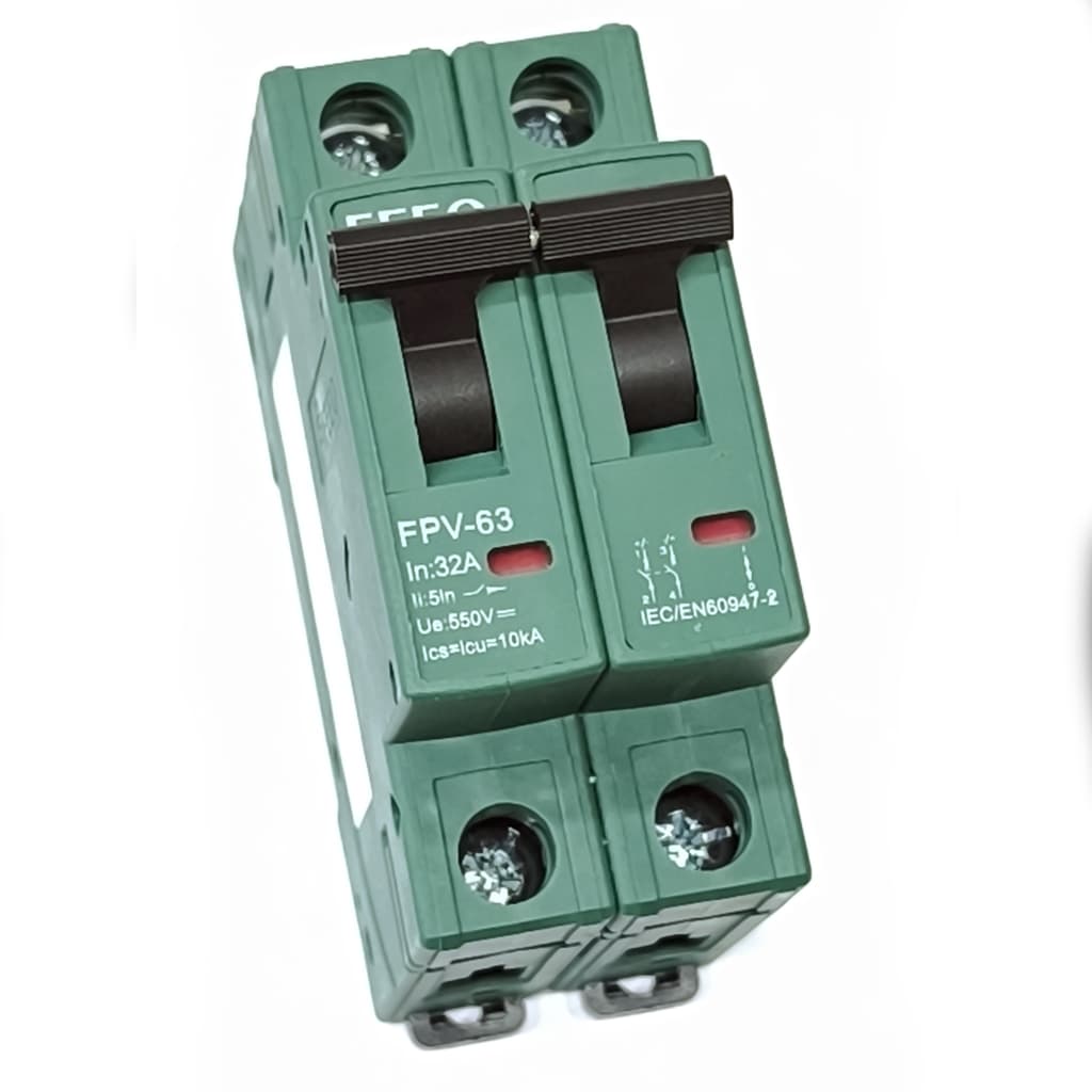 - Автоматический выключатель постоянного тока FEEO FPV-63 2P 550V/32A – профессиональное решение для защиты солнечных электростанций и промышленных DC-систем