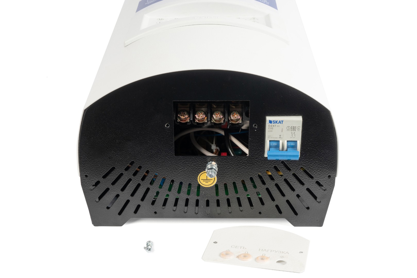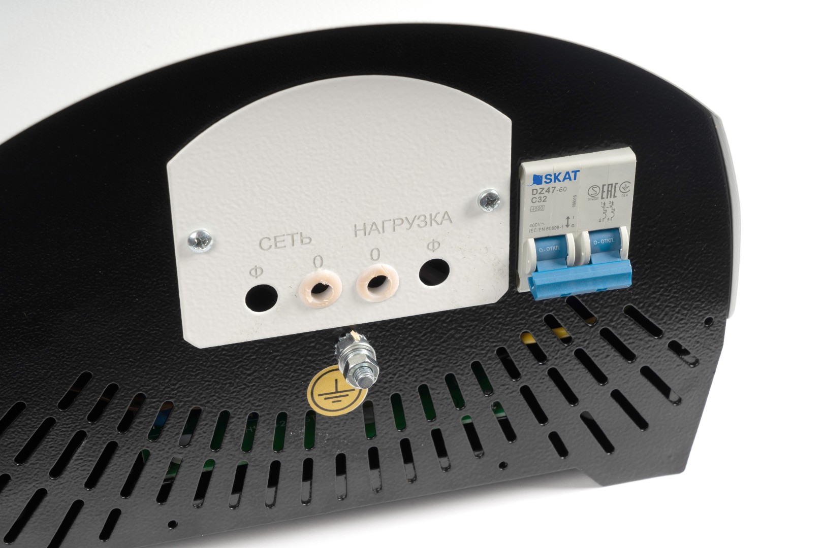 Встроенный ручной «Байпас»: Позволяет пустить ток в обход стабилизатора (например, при проведении сварочных работ), не демонтируя устройство.